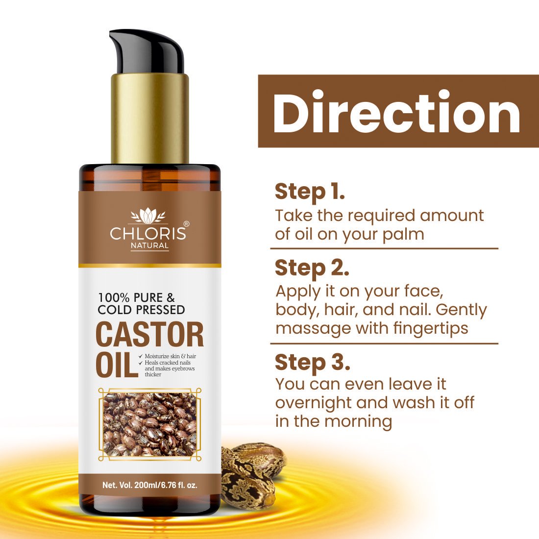 Pure castor oil is a versatile and natural product renowned for its numerous health and beauty benefits. Extracted from the seeds of the Ricinus communis plant, this oil is rich in ricinoleic acid, which is responsible for its unique properties.